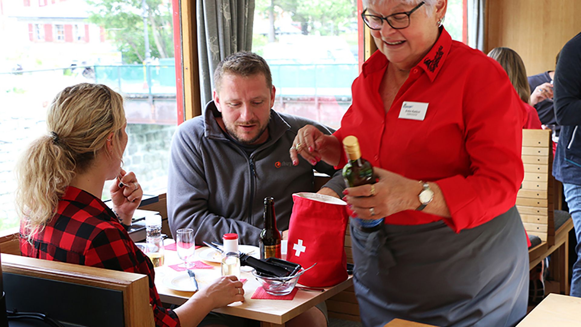 Im "SteamPub" während der Fahrt einen Brunch oder Raclette geniessen