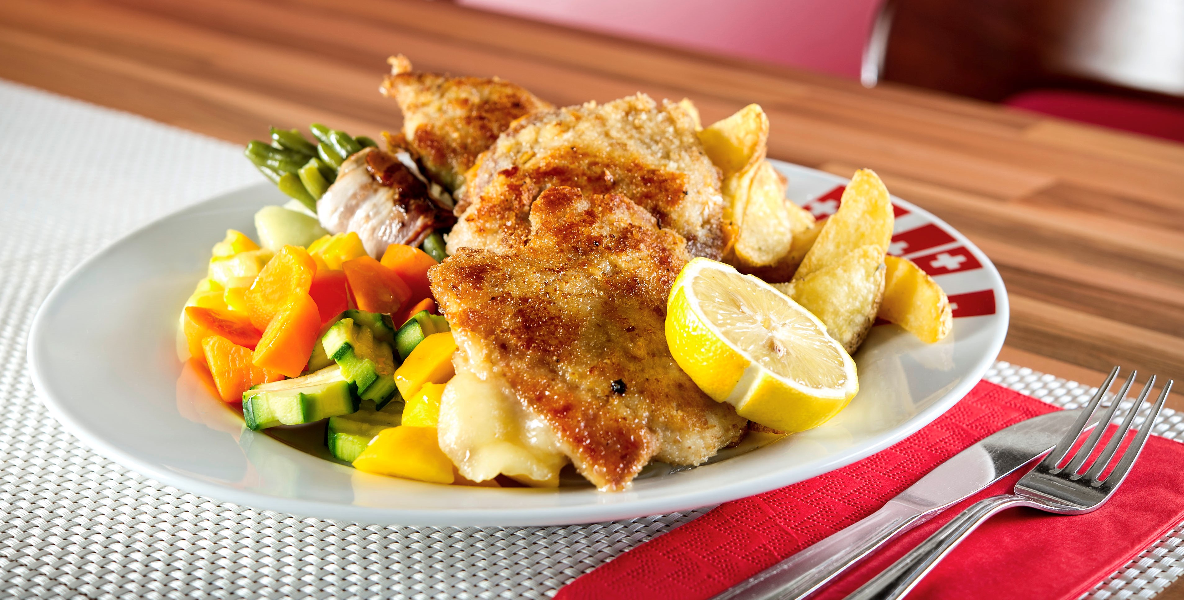 Weithin sichtbar verrät das leuchtende Weiß/Rot der Fassade, das etwas andere Restaurant. Drinnen bekennen sich auch die Kellner mitsamt der Tischdekoration zur Schweizer Flaggenfarbe und von der Wand grüßt farbenprächtig und glücklich eine Schweizer Kuh. Im kleinen aber feinen Restaurant der Köche Angelika und Andreas Lang findet der Gast die Schweiz, »wie sie singt und lacht« und wie sie genießt … nämlich mit Schweizer Musik sowie »modärni Choscht und Zdrinkä«. Neben dem Restaurant mit Terrasse laden zwei urchige Stübli zum »luschtigen« Feiern und geselligen Versammeln ein.
