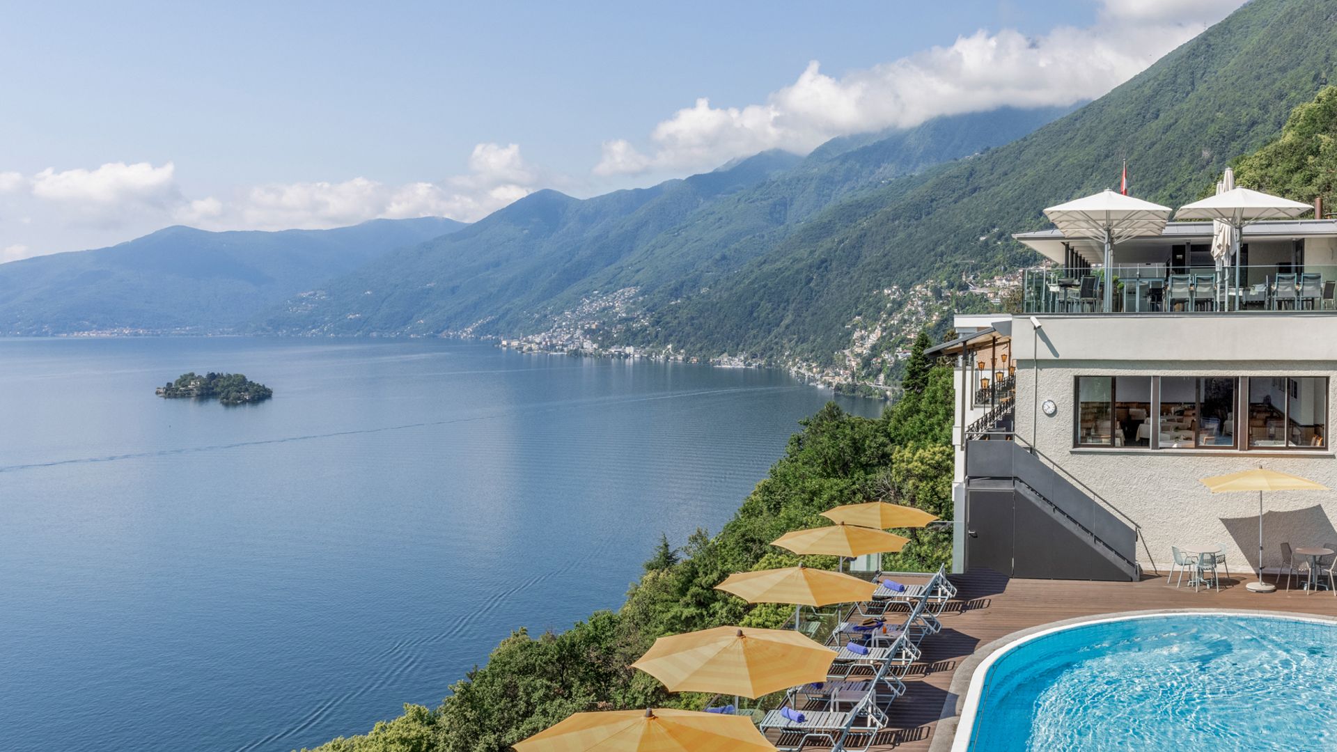 Each room has a balcony and an incomparable view over Lake Maggiore. The hotel has a large outdoor pool with a wonderful view and many small, private corners in the secluded garden to retreat to. Delicacies of Ticino cuisine and international specialties are served on the beautiful panoramic terrace or in the cozy restaurant. The spacious bar with its large terrace invites you to linger. During your stay, you can now also use the panoramic sauna, steam bath and fitness area, which round off the hotel's wide range of facilities.