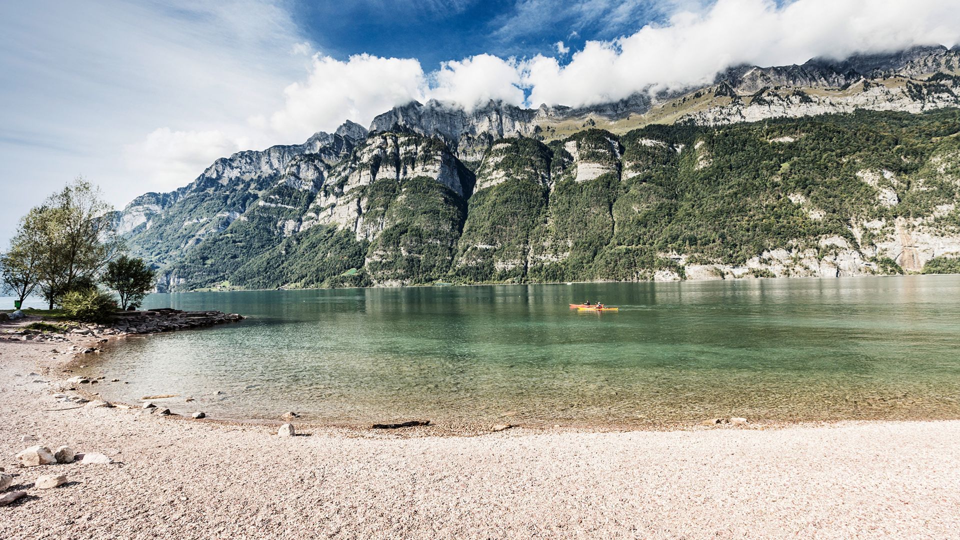 La région du Walensee surprend par la douceur de son climat, qui permet aux raisins de mûrir. Ce lac aux allures de fjord, sur les rives duquel s'élèvent des falaises de plus de 1000 mètres, est l'un des plus propres de Suisse. Bien que la température de son eau soit généralement inférieure de quelques degrés à celle des lacs voisins (elle dépasse rarement les 20 degrés en été), il jouit d'une grande popularité. Le Walensee est un eldorado pour les amateurs de sports nautiques : plongée, planche à voile et kitesurf, aviron, wakeboard, pédalo et kayak, stand-up paddle (SUP) - tout est possible. L'offre d'écoles de sport et de location de matériel est également importante.