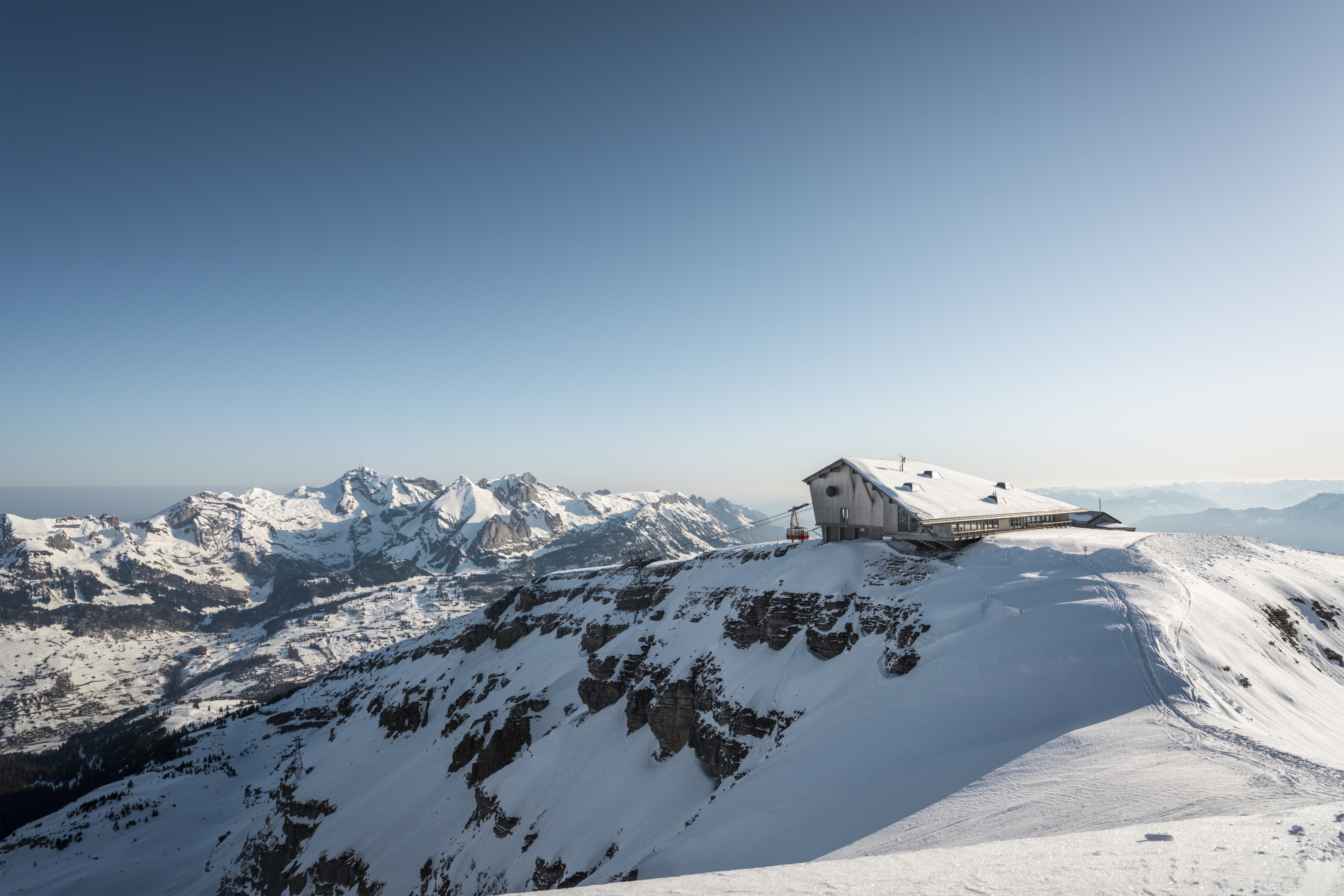 L'edificio sommitale, opera dei rinomati architetti Herzog & de Meuron, si inserisce dolcemente nel paesaggio montano del Toggenburg e sottolinea la silhouette unica del Churfirsten. Anche la stazione a valle è stata riprogettata dagli architetti.