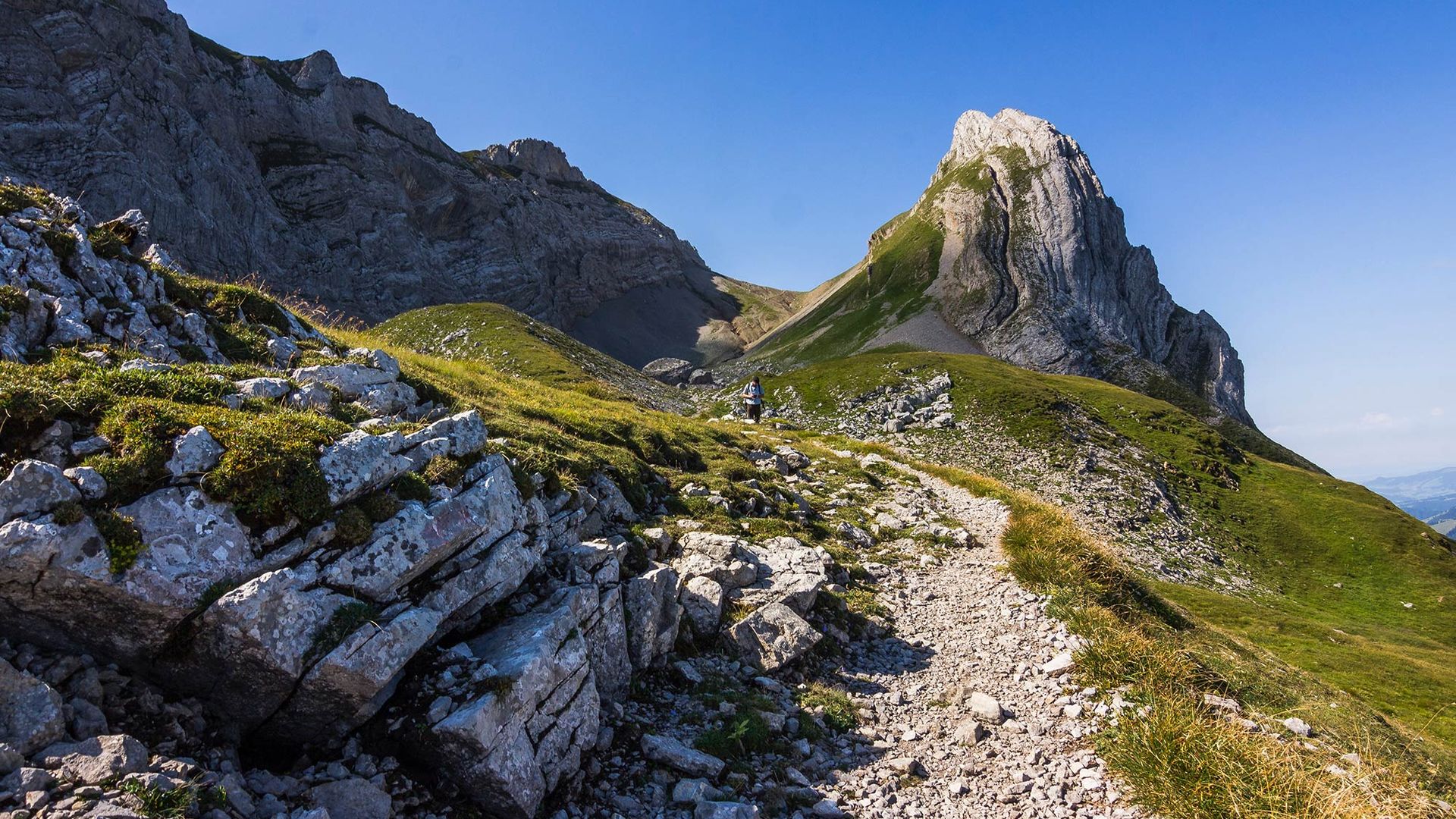 Le cime dell'Alpstein, come le Silberplatten, che risplendono luminose al sole fino all'Altopiano Centrale, si sono formate milioni di anni fa da depositi marini del Cretaceo. Le valli profonde, gli idilliaci laghi di montagna e i fantastici panorami attirano gli appassionati di sport e gli amanti della natura. L'Alpstein fa parte delle Alpi di Appenzello e appartiene ai cantoni di Appenzello Interno, Appenzello Esterno e San Gallo. Nonostante la sua altitudine piuttosto bassa rispetto ad altre vette alpine - la montagna più alta è il Säntis con 2502 metri - l'Alpstein appare molto imponente grazie alla sua “posizione di avamposto” settentrionale, a breve distanza dal Lago di Costanza. Il suo fascino è di conseguenza grande. L'accesso alle montagne è stato reso più facile per i visitatori già nel 1850, con la costruzione di sentieri escursionistici e ristoranti di montagna. Un ambizioso progetto di ferrovia del Säntis attraverso la Meglisalp fino al Säntis fallì. I binari dell'ex ferrovia del Säntis terminarono a Wasserauen, ma lasciarono spazio alla costruzione di diverse funivie. Oggi, l'Alpstein possiede la rete di sentieri escursionistici più fitta della Svizzera, con sei funivie e 25 locande di montagna. Anche la bellezza dell'Alpstein si è diffusa. L'Aescher e il Wildkirchli sono diventati famosi in tutto il mondo.